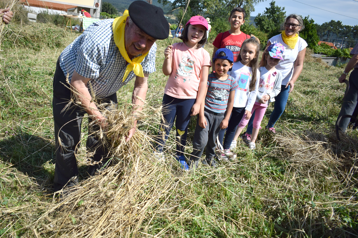 Os nenos que participan na Escola de Verán municipal dividíronse en grupos para escoitar as explicacións dos máis veteranos relativas á sega, unha tarefa antano moi tradicional e que se realizaba de xeito completamente manual, sen axuda de maquinaria.  Os maiores exerceron de mestres, tanto teóricos como prácticos, para os rapaces de entre 5 e 14 anos de idade. Algúns deles descoñecían como se levaba a cabo hai décadas este labor agrícola.