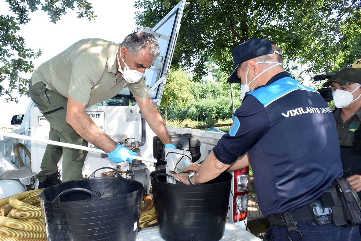 O alcalde, José María Bello Maneiro, asistiu esta mañá na Mina Mercedes á solta de cincocentos exemplares de troita por parte da Delegación Territorial da Xunta en Pontevedra, a través da Xefatura Territorial de Medio Ambiente.