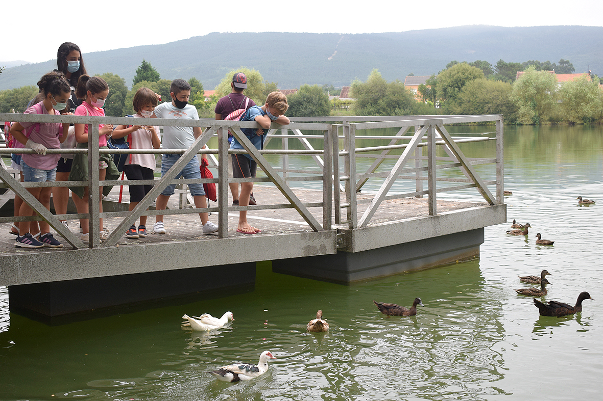 Os rapaces foron camiñando dende o colexio de Baño, no que se desenvolven as actividades estivais, ata a lagoa. Alí botáronlles comida aos patos e gansos , merendaron e realizaron un inventario das distintas especies de árbores que bordean a lagoa.