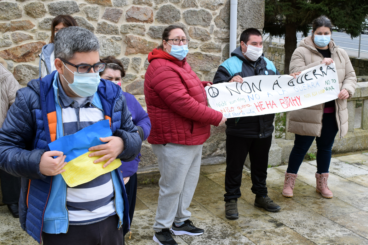 Representantes do goberno local, encabezados polo alcalde, José María Bello Maneiro, traballadores municipais, usuarios do CODI e veciños participaron no acto, que consistiu en cinco minutos de silencio como mostra de apoio a todas as persoas que están a sufrir o conflito bélico desencadeado pola Federación Rusa contra Ucraína. Deste xeito, o Concello sumouse ás concentracións convocadas pola Federación Española de Municipios e Provincias (FEMP) en todas as entidades locais do país.